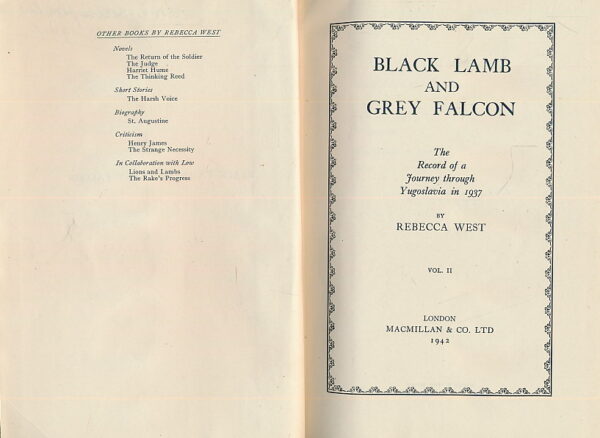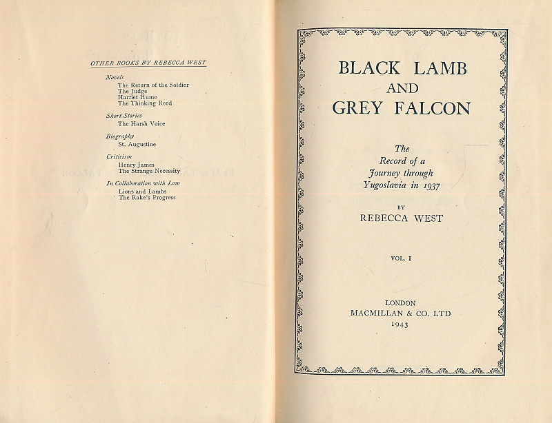 Black Lamb and Grey Falcon. The Record of a Journey through Yugoslavia in 1937 Vol. I & II Hardcover – 1942/43 by West, Rebecca