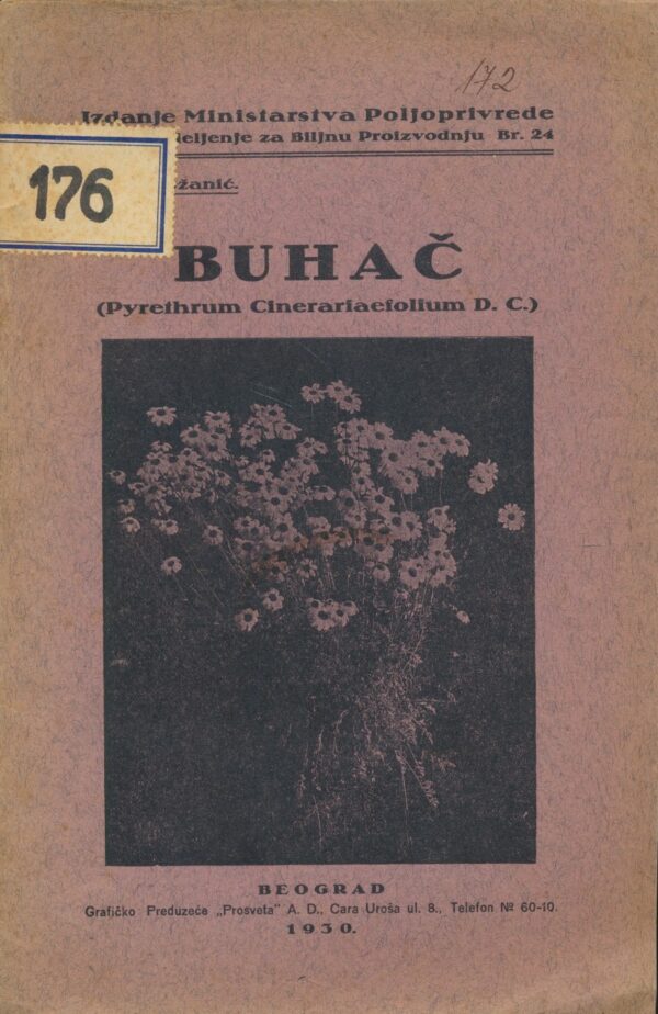 Stručna publikacija posvećena buhaču (Pyrethrum cinerariaefolium), biljci poznatoj po prirodnom insekticidnom djelovanju, koja je u prvoj polovici 20. stoljeća imala značajnu gospodarsku ulogu, osobito u Dalmaciji. Knjiga obrađuje botanička svojstva biljke, uvjete uzgoja, način prerade te njezinu primjenu u suzbijanju štetnika. Pisano pregledno i s naglaskom na praktičnu vrijednost, djelo je namijenjeno agronomima, poljoprivrednicima i svima koje zanima povijest mediteranske poljoprivrede i razvoja prirodnih insekticida. Vrijedan je izvor za razumijevanje jedne važne kulture i njezina mjesta u domaćem gospodarstvu.
