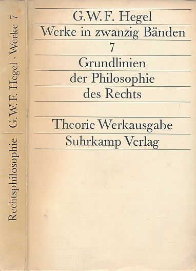 G.W.F. Hegel: Werke in 20 Bänden (Suhrkamp Verlag) Theorie-Werkausgabe Temeljni spis političke i pravne filozofije. Sadrži teoriju o državi i civilnom društvu.