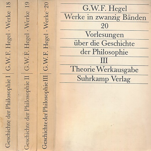 G.W.F. Hegel: Werke in 20 Bänden (Suhrkamp Verlag) Theorie-Werkausgabe Sveobuhvatan pregled povijesti filozofije od antike do Hegela.