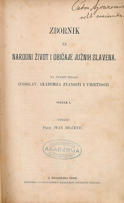 Zbornik za narodni život i običaje Južnih Slavena, Svezak I-III